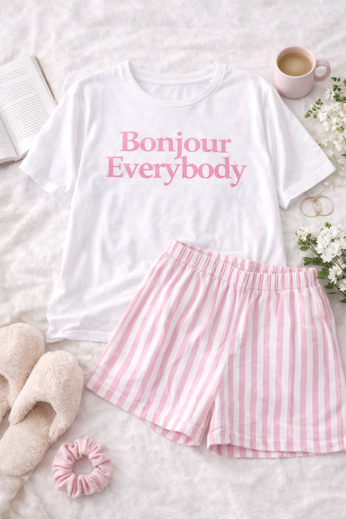 Dámské bavlněné pyžamo Bonjour – pohodlný set tričko + kraťasy (100% bavlna)