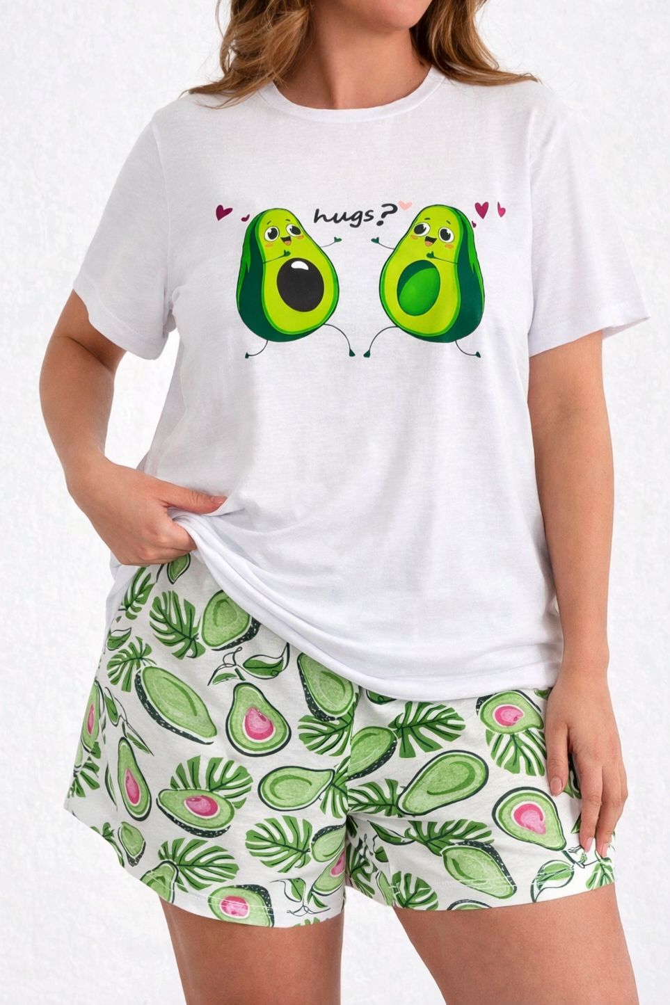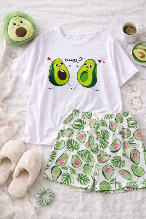 Dámské bavlněné pyžamo Avokádo – pohodlný set tričko + kraťasy (100% bavlna)