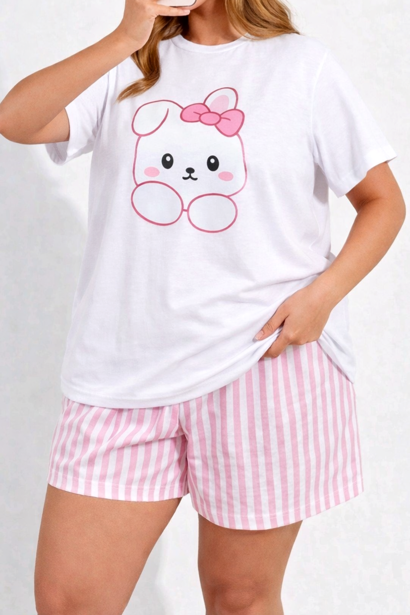Dámské bavlněné pyžamo Králíček – pohodlný set tričko + kraťasy (100% bavlna)